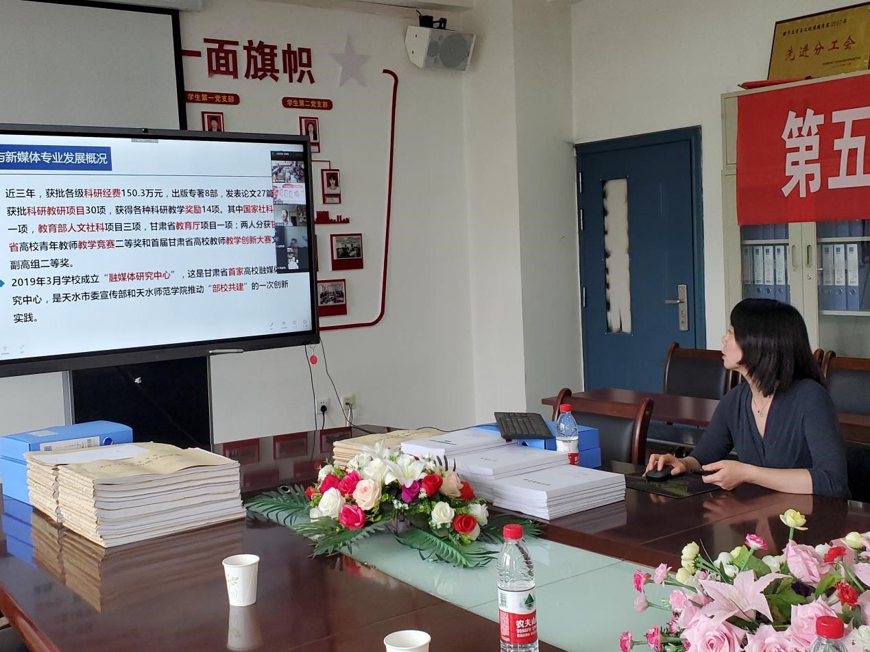 专家组听取了网络与新媒体系系主任朱艳的自评汇报,并与该专业的师生分别进行谈话,听取了师生对专业建设的意见。校内专家对该专业的评审材料,包括试卷、教案、教学大纲、考试大纲、学生毕业设计作品等进行了调阅。
