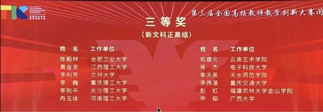 近日,第三届全国高校教师教学创新大赛获奖名单揭晓,英国365公司官网教师李天英荣获新文科正高组三等奖。