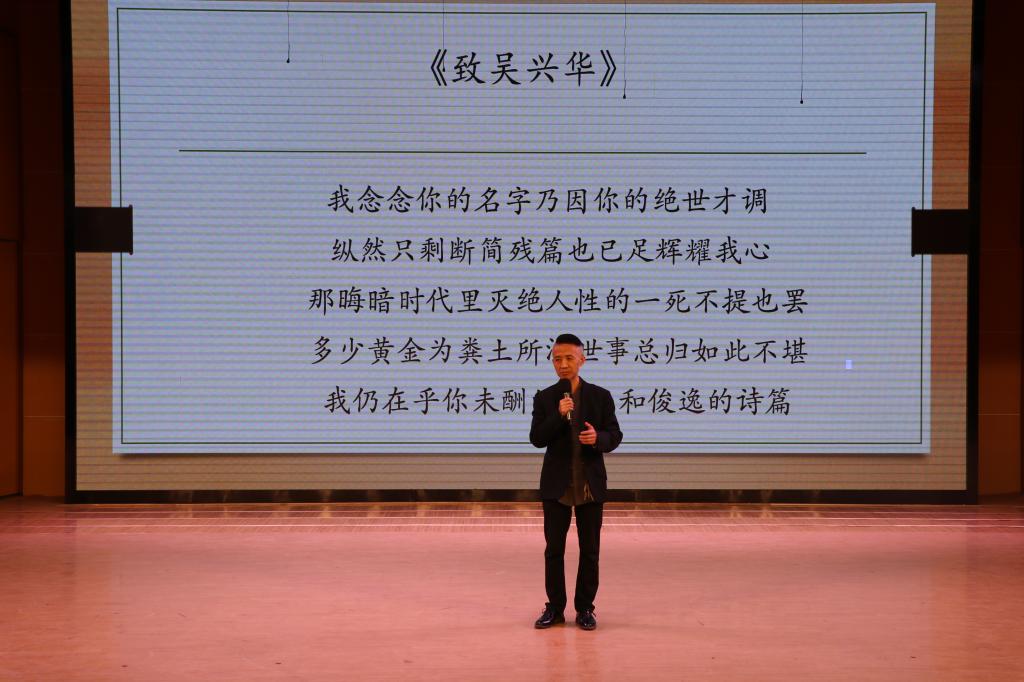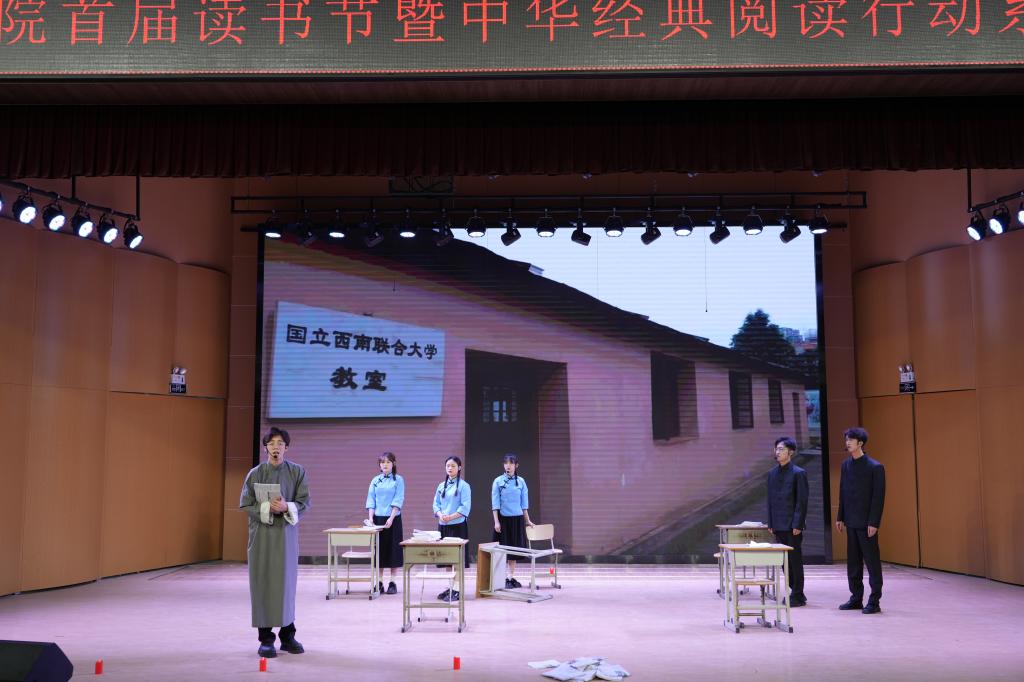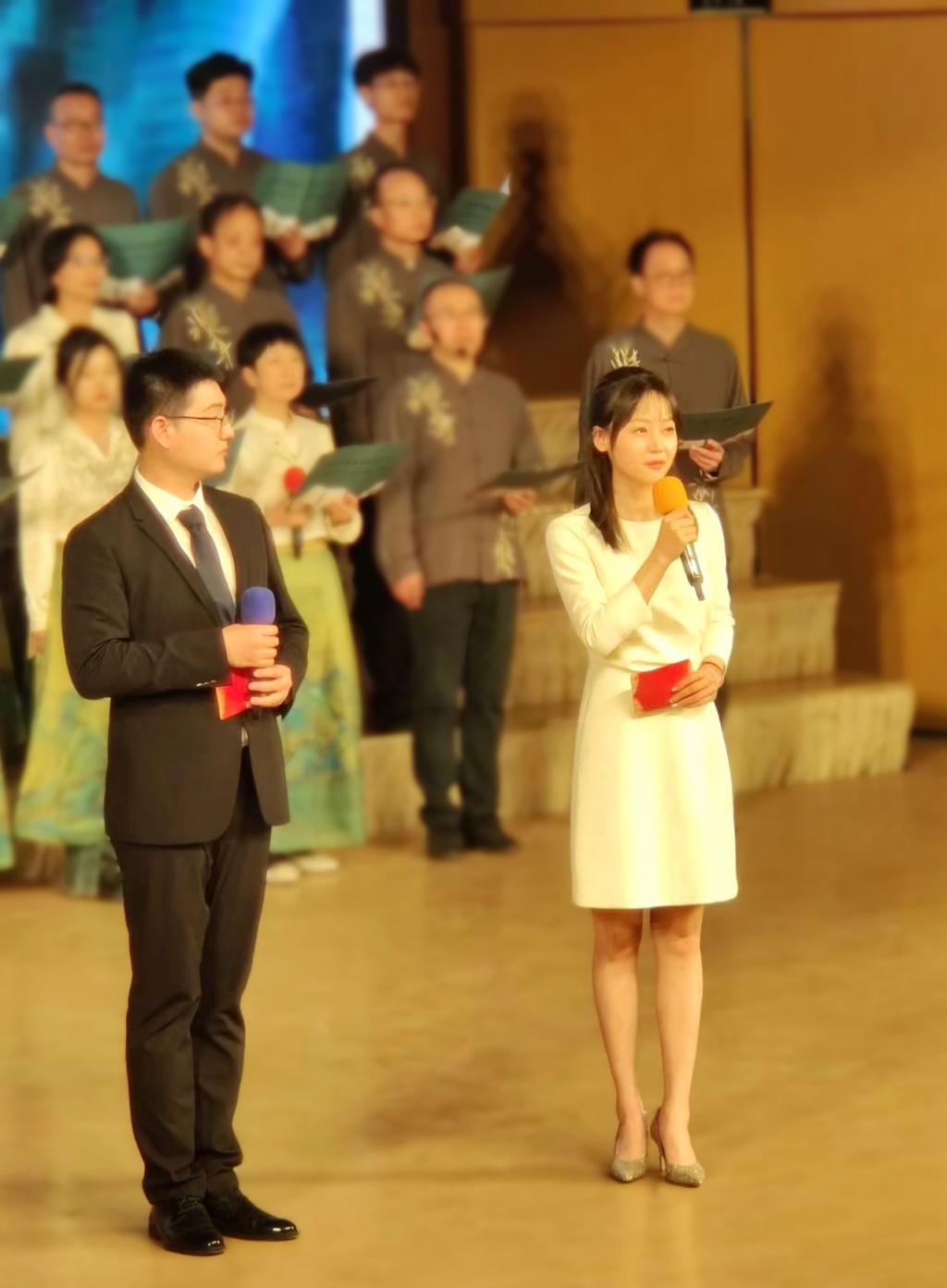 文传学院教师孙菻、研究生朱思维担任文艺演出环节的主持人。“最美人间四月天,春风漫卷书香来”,主持人承上启下,强调了晚会主旨,感谢在场嘉宾的到来,并串联介绍了本次晚会的每一个精彩的文艺节目。
