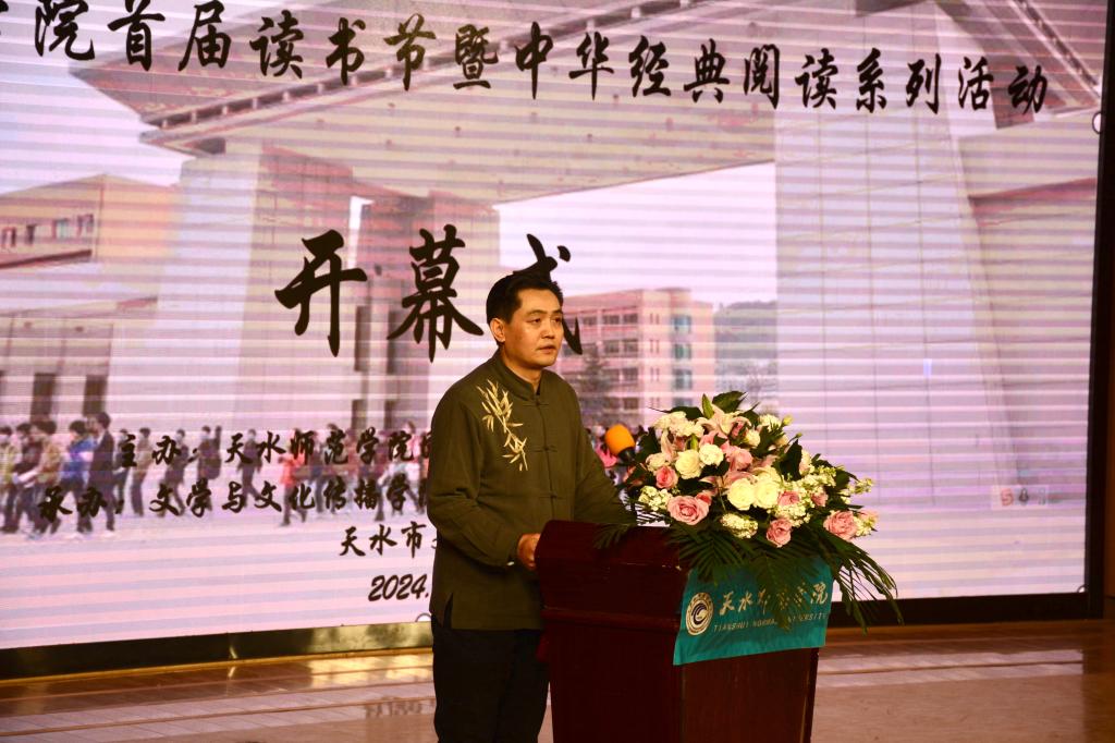 院长王贵䘵回顾了自原中文系、文史学院、文传学院以来28届系列读书活动的历史和体会。他强调,在这个信息爆炸的时代,我们不仅要学会如何获取信息,更要学会如何筛选信息、如何深入思考、如何形成自己的见解。希望大家不仅要读懂书中的内容,更要领会书中的精神内涵;希望大家能够将阅读融入到日常生活中,让阅读成为一种习惯,让知识的力量不断滋养我们的心灵。
