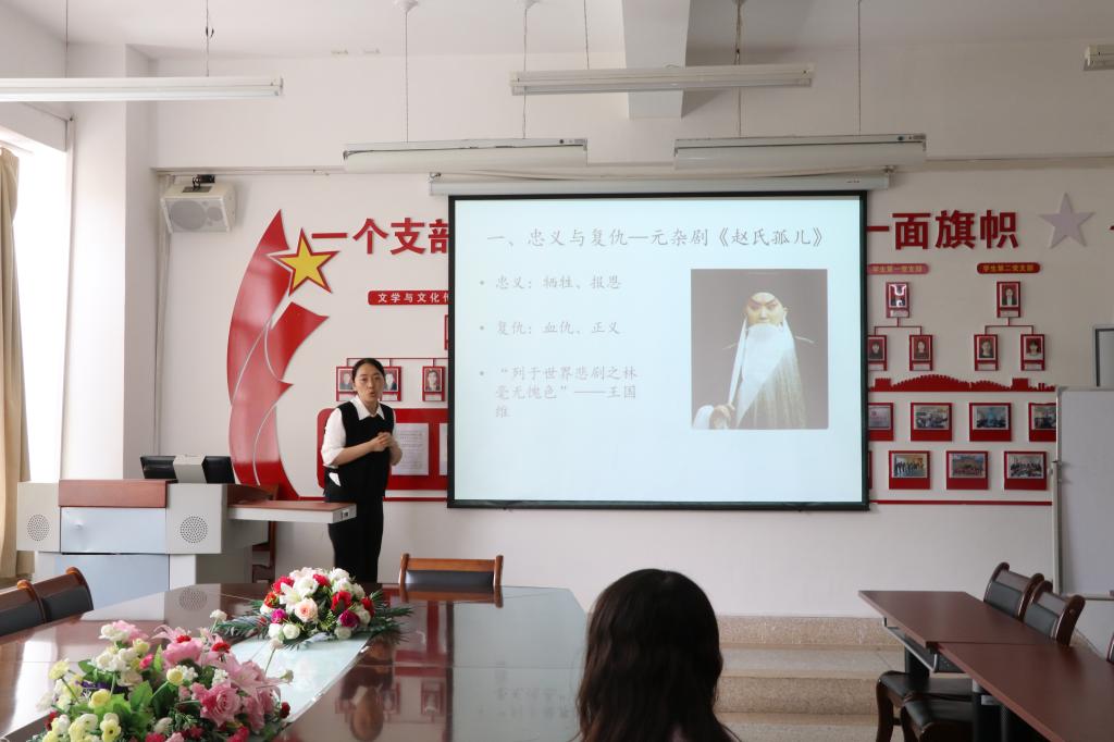 杨敏老师以《赵氏孤儿的当代价值》为主题展开了详实的讲授。各位评委进行了点评。