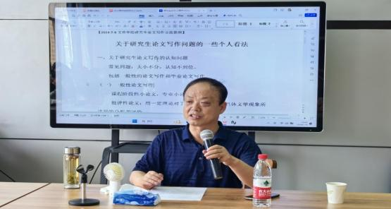 交流会上,王元忠教授就同学们提出的问题举出相关的例子进行答疑,他谈到对一般论文写作和毕业论文写作要有区分的意识。论文的写作要有严密的逻辑和层次,要认真积累文学作品的原始阅读体验。要掌握好相关专业论文的理论知识;更要做到理论知识和文本分析的融会贯通,使得论文语言的表达更加严谨。