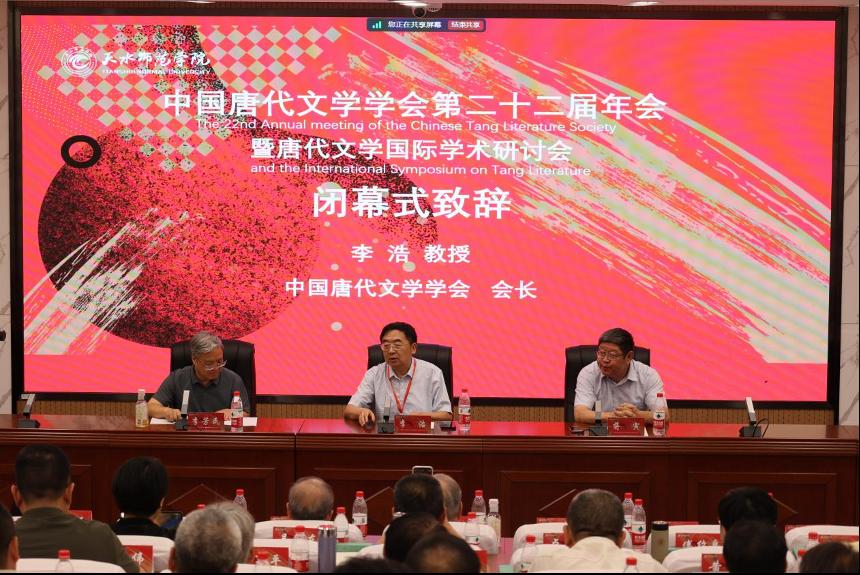 闭幕式上,赵阳阳等4位学者作了小组交流汇报,霍志军等5位学者发表参会感言。中国唐代文学学会副会长、华南师范大学教授蒋寅作大会学术总结。中国唐代文学学会会长、西北大学教授李浩致闭幕辞。
