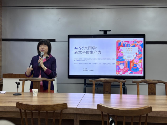 应文学与文化传播学院邀请,6 月 19 日晚 7 时,南洋理工大学人文学院著名教授、博士生导师衣若芬教授莅临我校,在雷达文学馆以《AIGC文图学:新文科的生产力》为题开展学术讲座。讲座由文学与文化传播学院副院长李天英教授主持,中国语言文学硕士研究生和部分教师参加。
