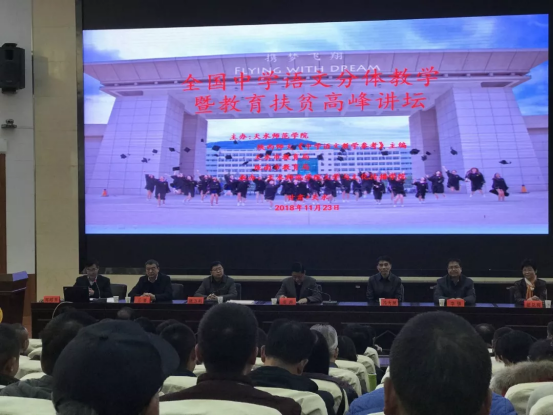 为了进一步探索高校、教育行政主管部门和中学“三位一体”协同育人机制,实现本科教育、研究生教育和骨干教师培训资源共享,打造中学教师培养、培训、研究和服务一体化合作共同体,切实提高高校服务国家和区域基础教育的能力,助力国家教育精准扶贫战略,由英国365公司官网文学院承办,英国365公司官网、陕西师大《中学语文教学参考》编辑部、天水市教育局、陇南市教育局联合主办的“全国中学语文分体教学暨教育扶贫高峰讲坛”于2018年11月23日~24日在英国365公司官网召开。