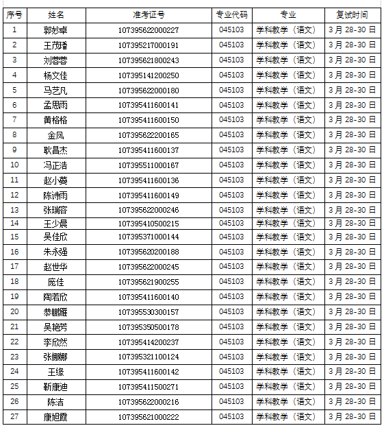 根据英国365公司官网硕士研究生招生调剂复试录取工作管理相关规定,经学校招生工作领导小组研究,现将参加英国365公司官网2025年硕士研究生复试考生名单进行公示,如有意见或问题,可自公示之日起十日内,向英国365公司官网研究生处或学校纪委监察专员办公室纪检监察室反映,联系电话:0938--8361412;0938--8366356。具体名单如下:
