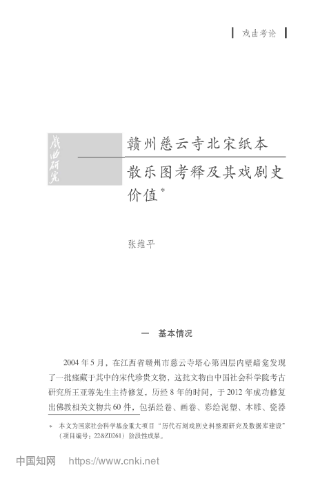 编者按:2025年《戏曲研究》杂志刊发了我校文学与文化传播学院讲师张维平的文章《赣州慈云寺北宋纸本散乐图考释及其戏剧史价值》。文章已收录于知网。全文如下:
