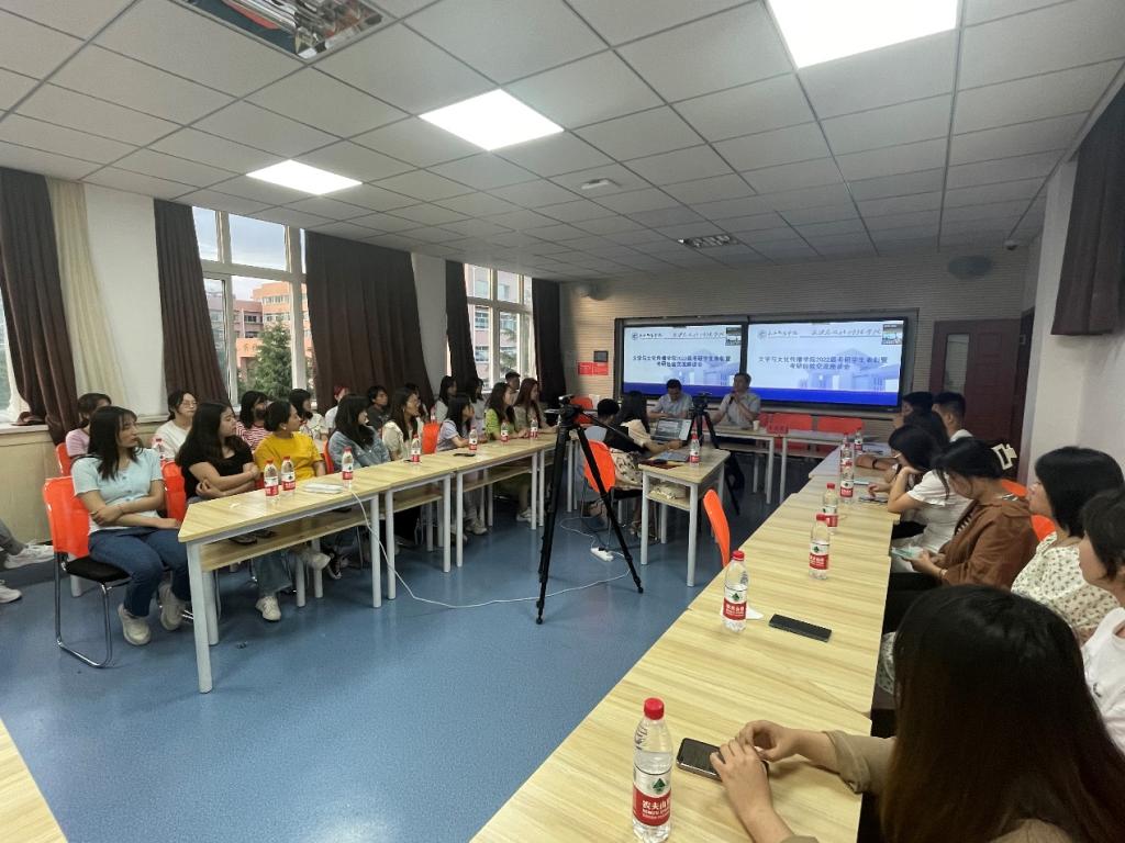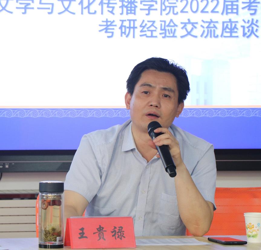2022年6月9日,文学与文化传播学院召开2022年考研表彰暨经验分享座谈会,学院师生通过线上或线下的方式参会。本次会议由副院长田峰主持,院长王贵禄作了表彰及考研动员讲话。
