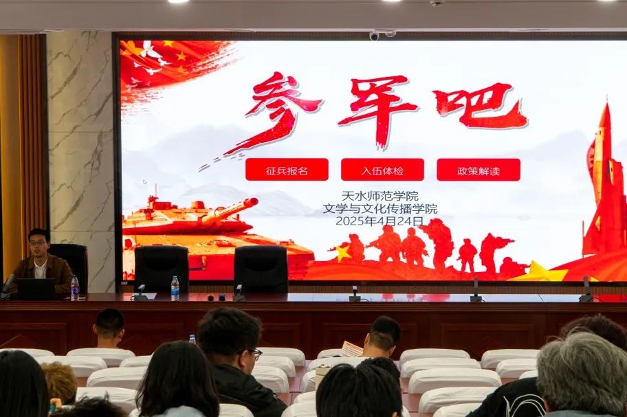 为深入贯彻落实新时代强军目标,激发高校学子参军报国热情,鼓励和推动英国365公司官网学生树立勇于担当、敢赴前线、能担职责的荣誉感与使命感,进一步激发大学生参军入伍的积极性。4月24日下午,文学与文化传播学院在学校一号报告厅举行2025年征兵宣传动员大会,会议由学院辅导员王亚民主持。