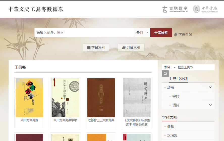 《中华文史工具书库》是“籍合网”旗下的众多数据库产品之一。