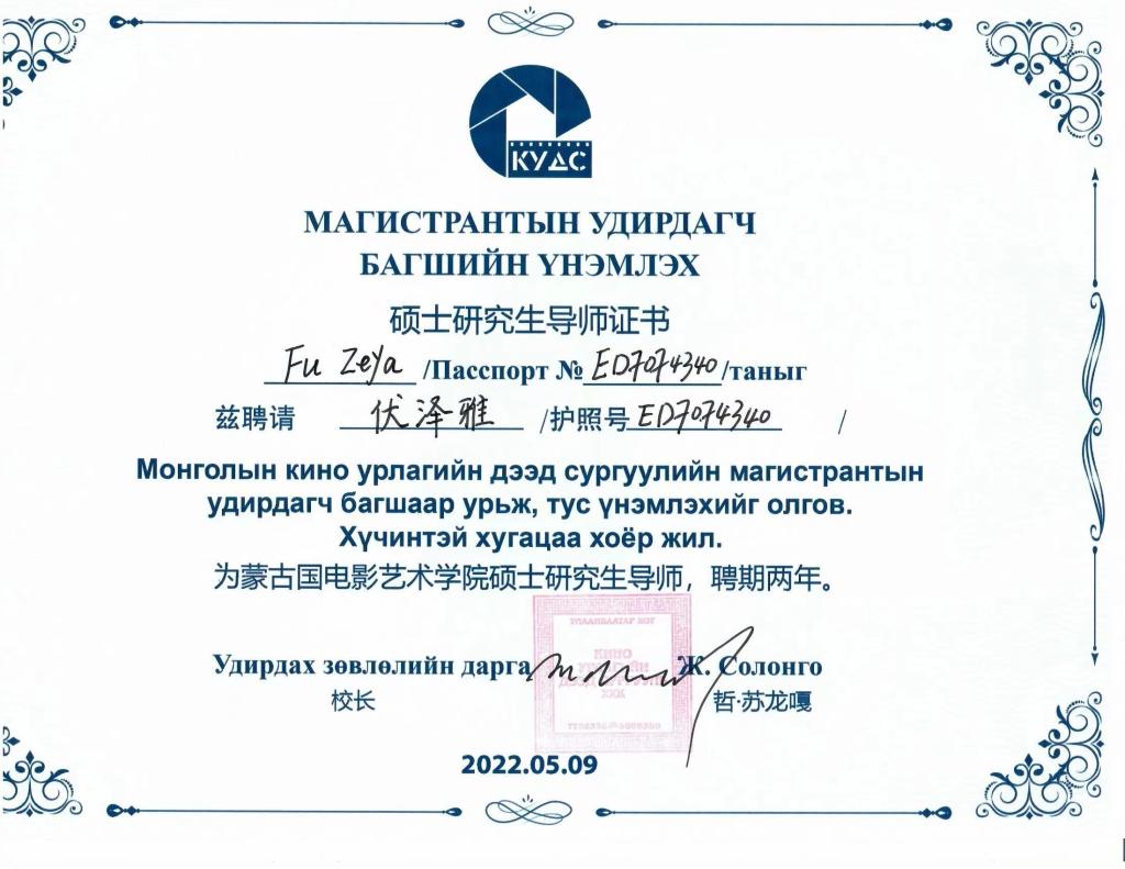 目前2021年3月起在蒙古国研究大学攻读国际与域情研究专业博士研究生,研究方向为“一带一路”倡议视域下中蒙教育、经济、文化等领域的沟通与交流,同时在内蒙古师范大学、蒙古国电影艺术学院、蒙古国乌兰巴托额尔德木大学、蒙古国可汗国际学院等担任外聘老师与顾问相关工作。