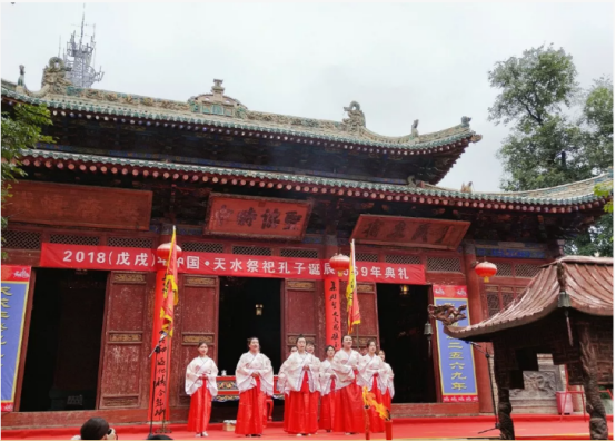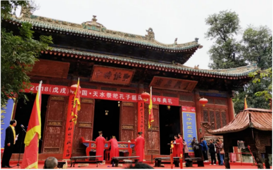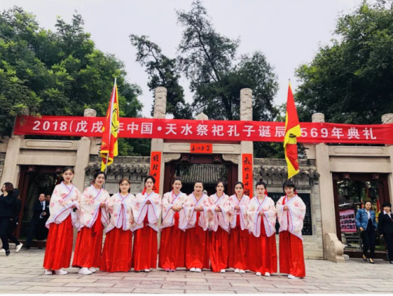 2018(戊戌)年9月28日上午10时文学院学科教学(语文)教育硕士2018级研究生在天水市文庙参加了纪念孔子诞辰2569周年祭祀典礼。